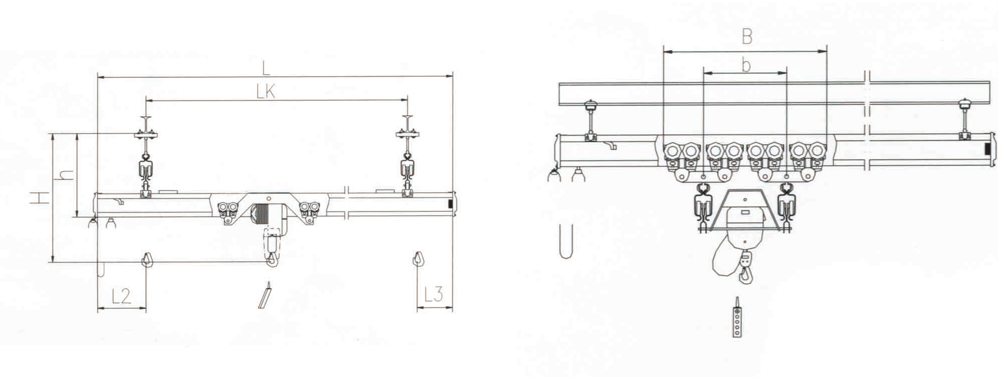 雙梁與JPK型環(huán)鏈電動葫蘆配套使用,電動葫蘆運(yùn)行小車可以沿主梁方向運(yùn)行。