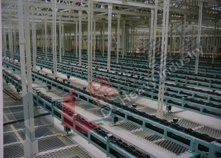 ●雙鏈移行機:由機架、頭尾輪、鏈條及驅動裝置組成