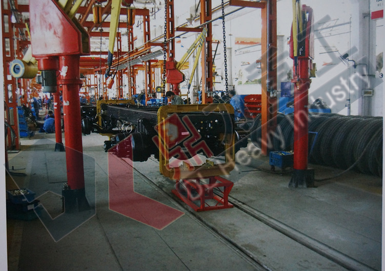 ●由牽引鏈條推動(dòng)在地面上特制的臺(tái)車,完成預(yù)定的工藝輸送
